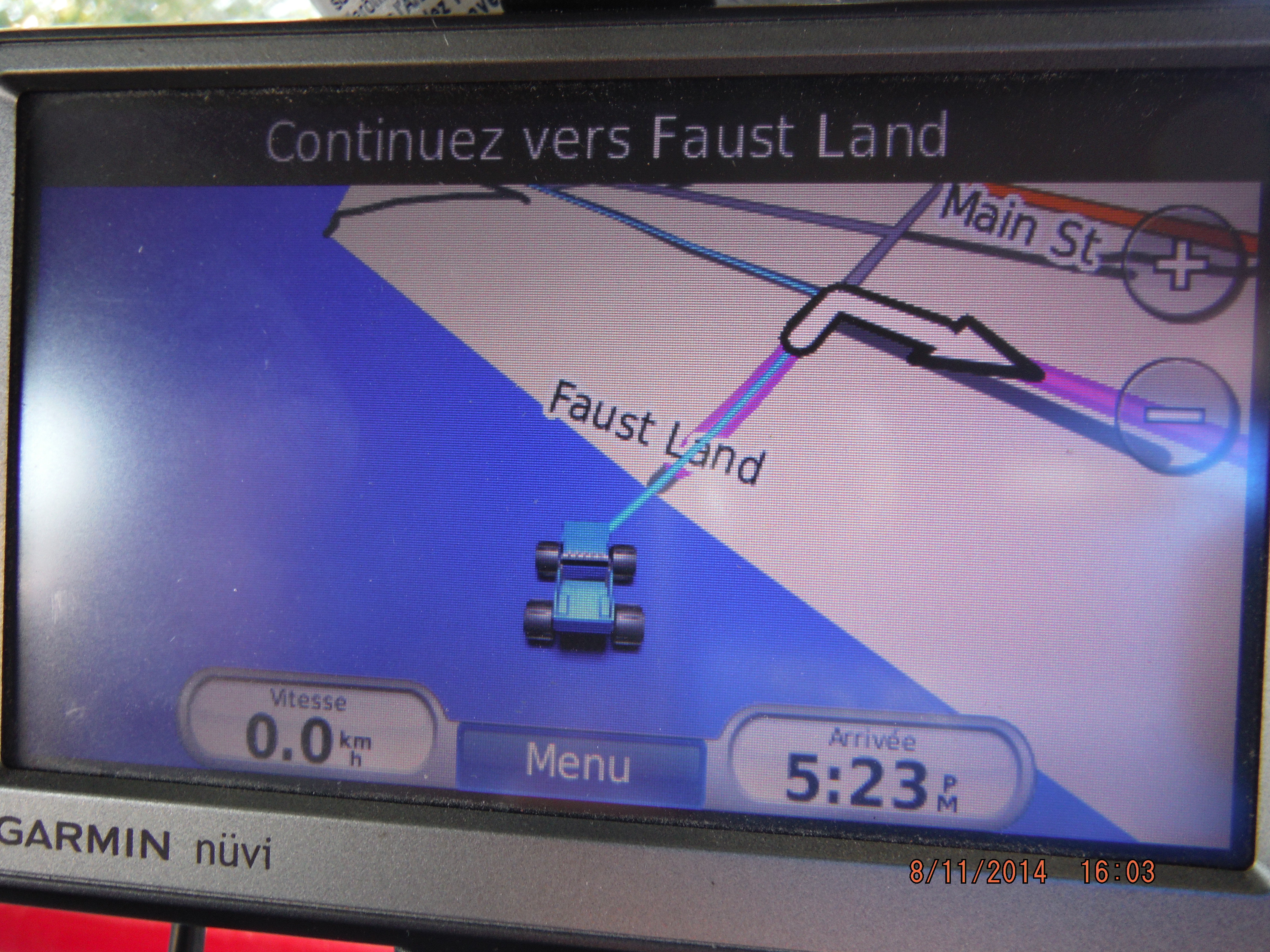 F: “Are you kidding? Even Mrs Garmin doesn’t know where we are!” (Low satellite reception).