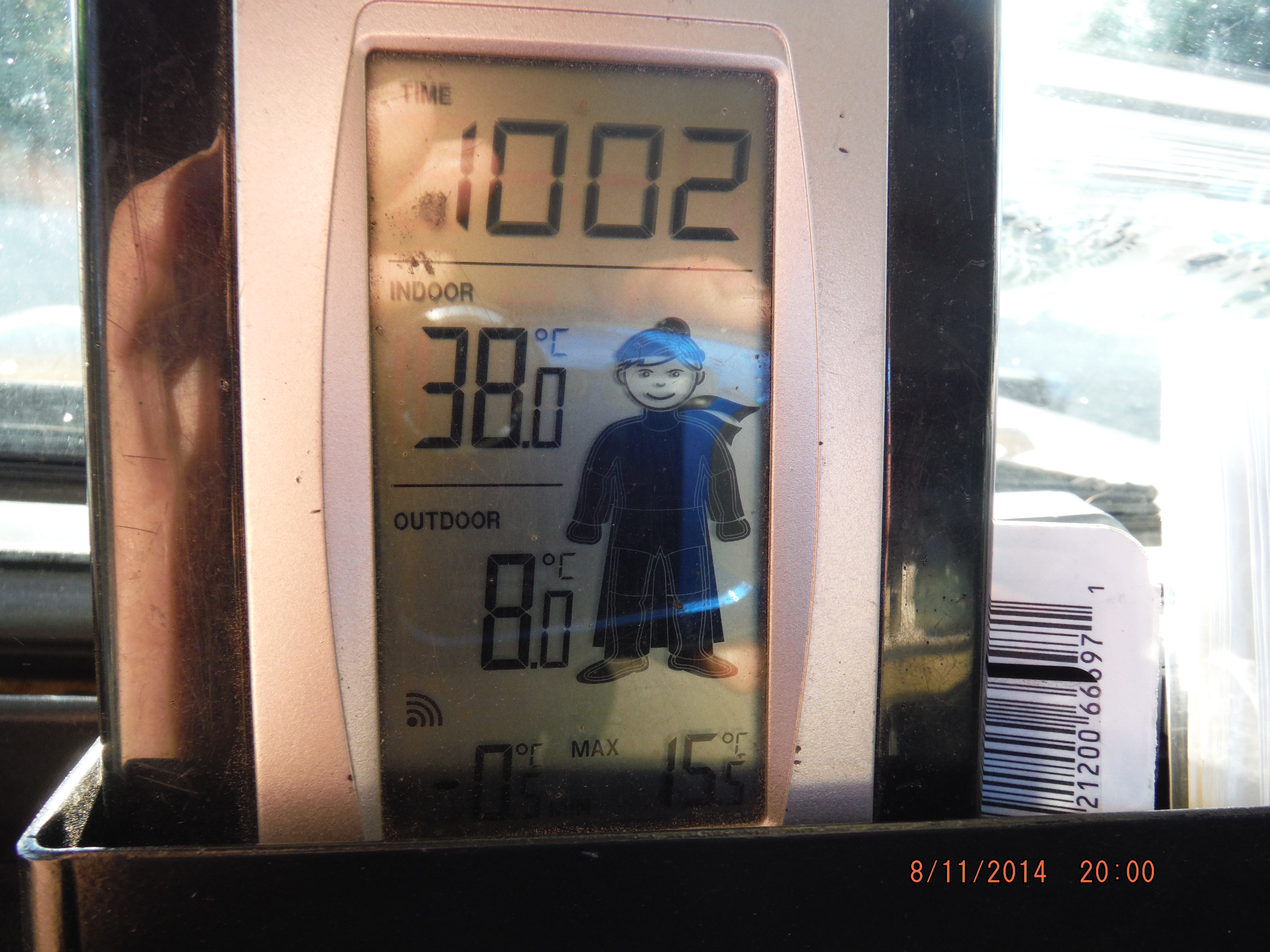Did I mention it was hot in the truck? 38*C = 100*F (Indoor refers to the inside of the truck while we use the outdoor sender device to monitor temperature in the fridge…Smart, uhn! )