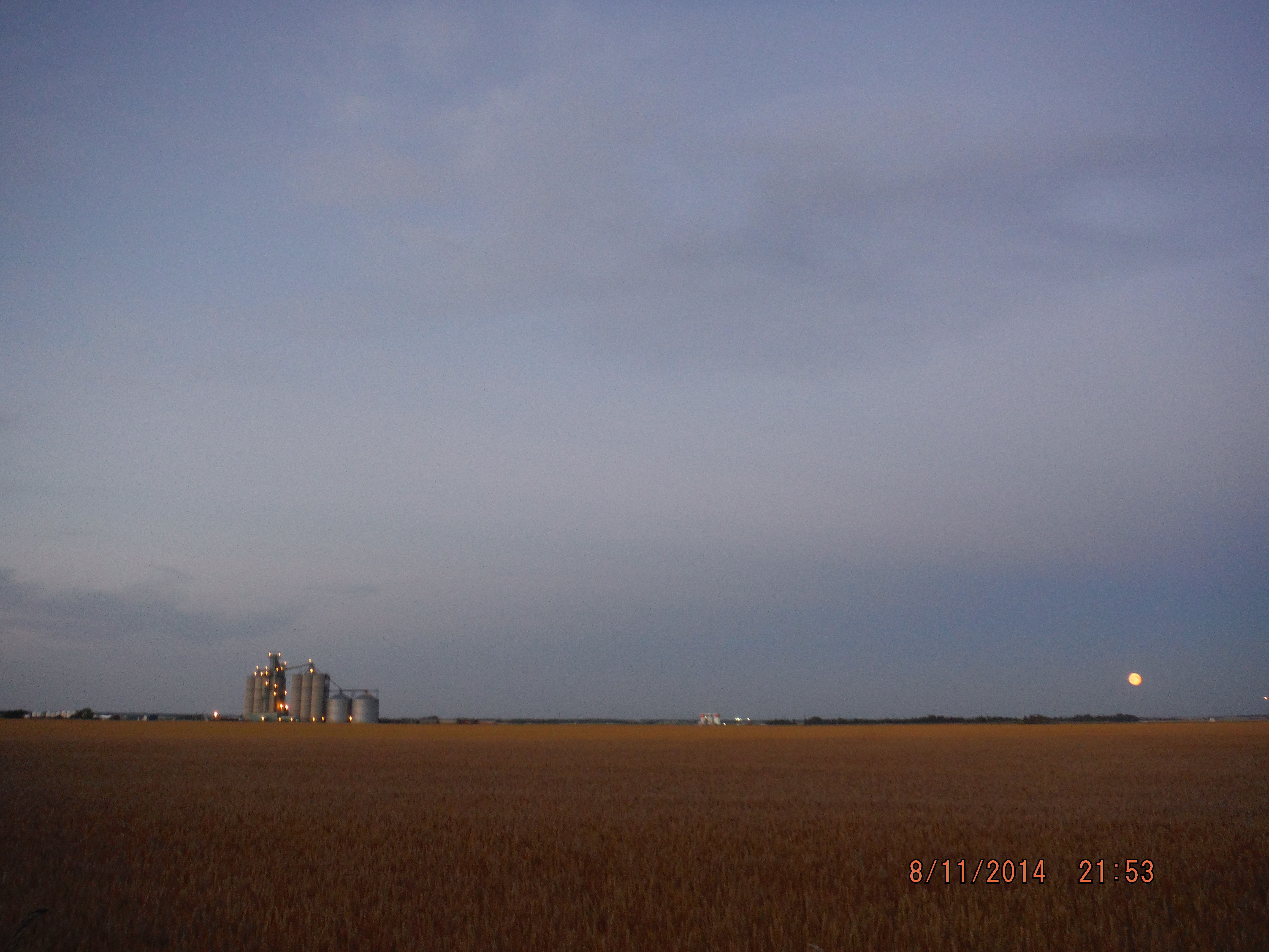 In Falher, Ab, we stop for the night and enjoy a 10 pm sunset/moon rise. Aaaah cool !