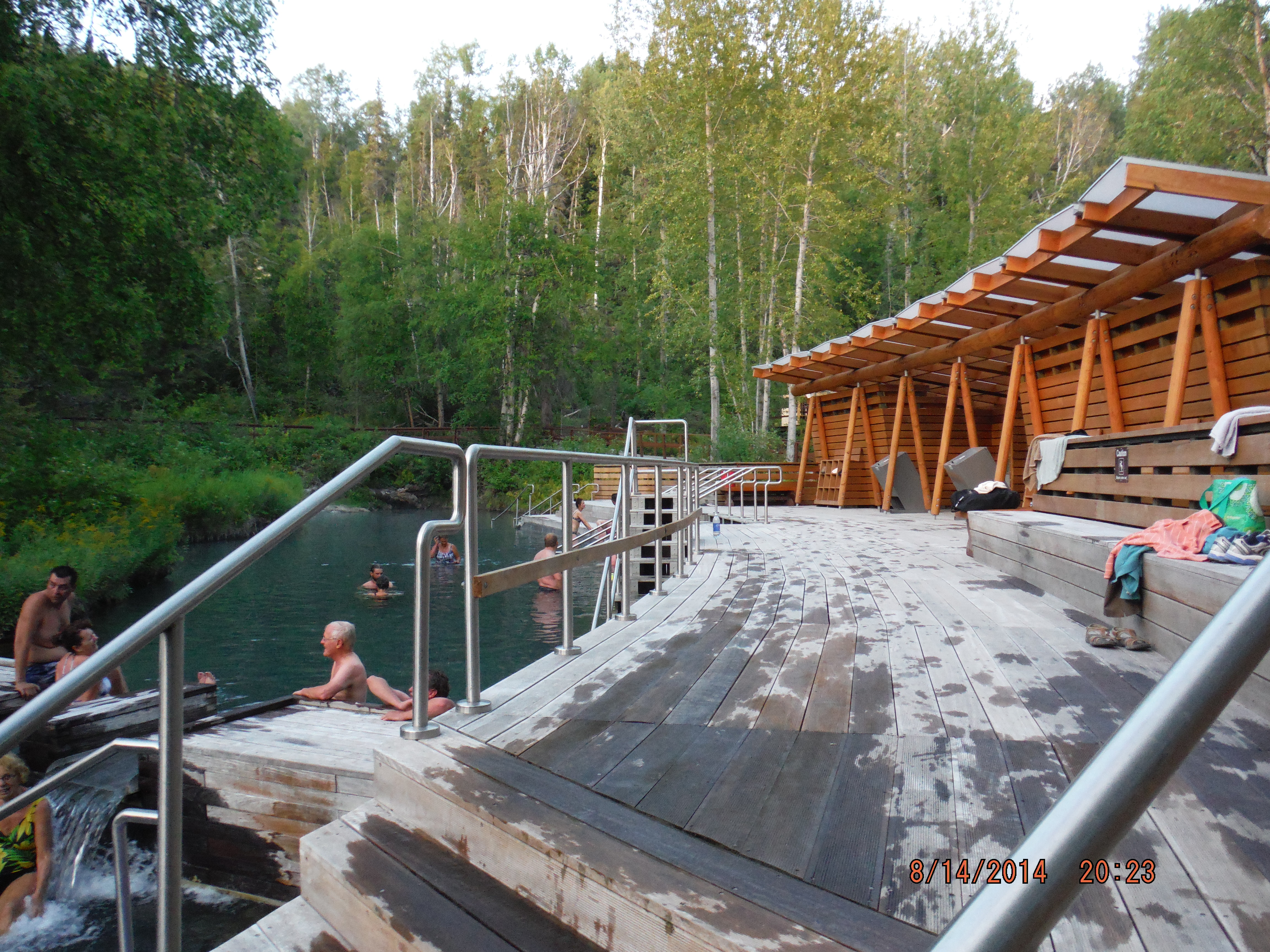 At Liards hot springs, we stop for the night and enjoy a nice HOT swim in the natural HOT spring. Water temperature can reach up to 52*C (125*F)