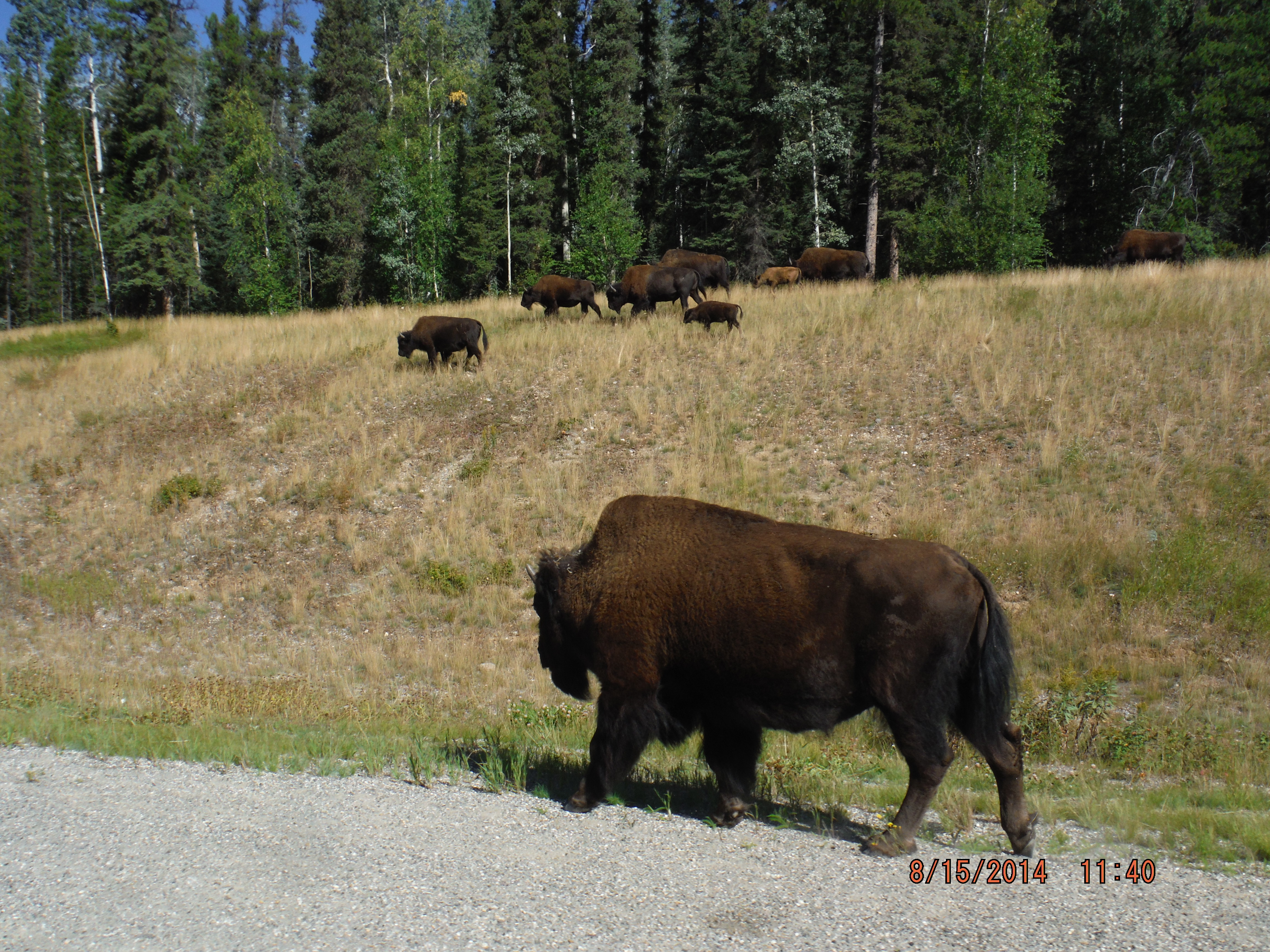 It seems a herd of wild buffalos lives by the way side of the Alaska highway just north of Liards hot springs!