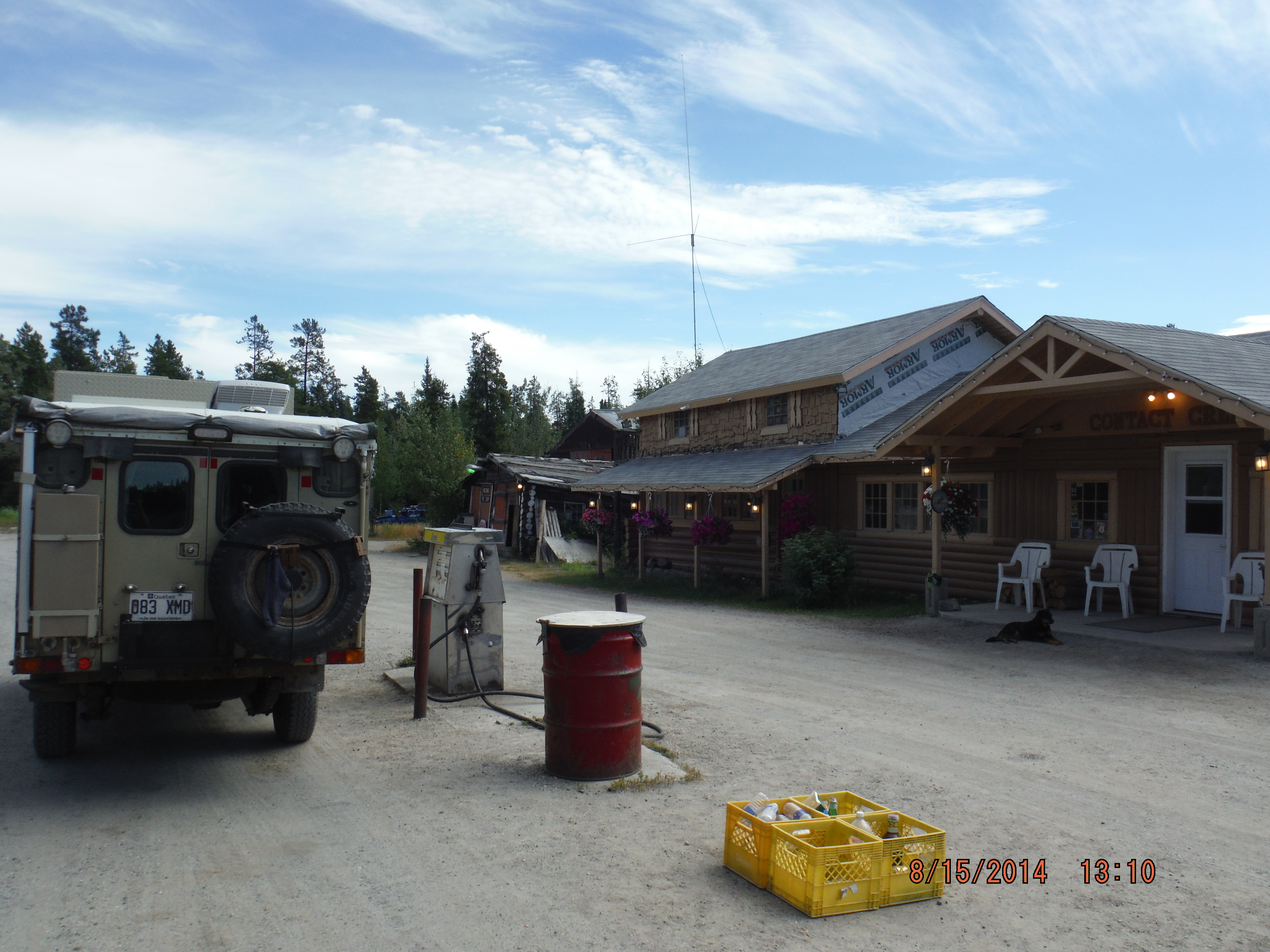 A place of high historic significance as it is where the north team of Alaska highway builders met the south team. In effect, their meeting meant the highway was not just a fantasy anymore but had become a reality. The small log cabin on the picture used to be home to a trapper who, when the road opened, set up a gas station and posted his wife there to pump gas for early Alaskan travellers.
